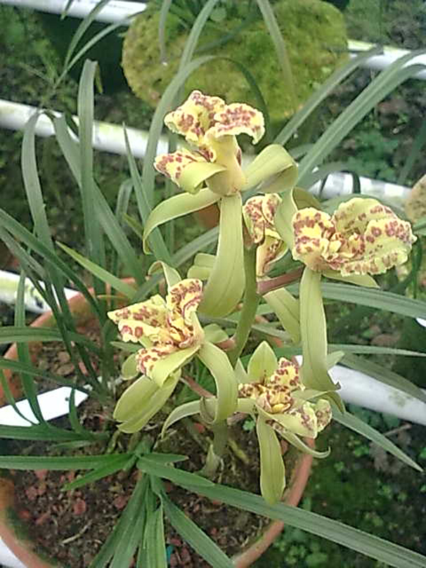 2001年下山。2002年共计购买五苗。有龙根。兰友送至四川成都青石桥花鸟市场上购得。 |